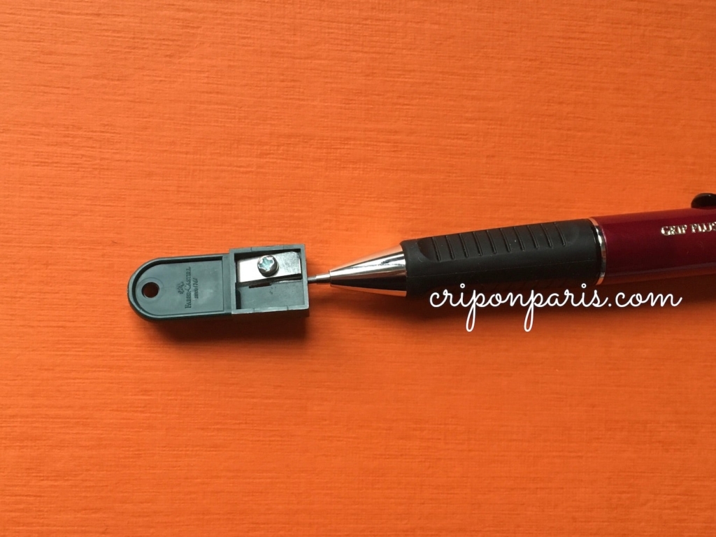 1.4mmくらいになると、芯の先が丸くなるのが気になるかもしれません。その場合は芯研器で削ることもできます。