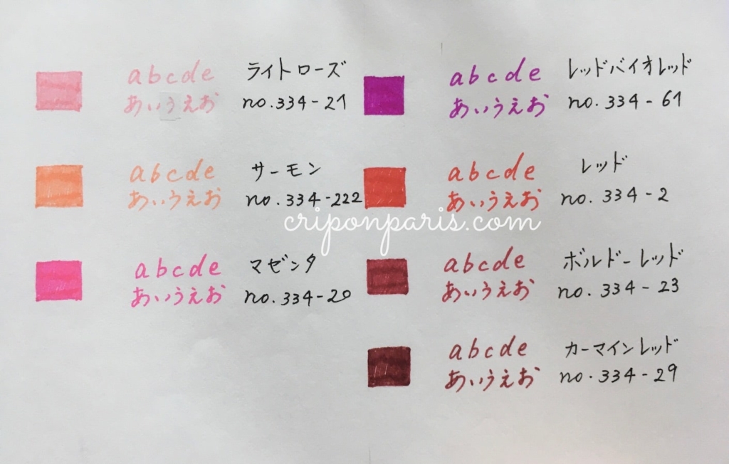 どの色にも「no. 334」と番号がありますが、トリプラス ファインライナー0.3mmの品番です。